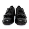 Scarpa allacciata tipo derby 4 fori con elegante doppia frangia con borchie in pelle di morbido vitello.