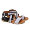 Sandali bassi Tiurai da donna in pelle con strass. Chiusura alla caviglia con fibbia.