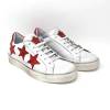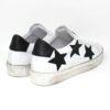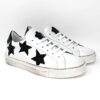 Sneakers 6 fori tomaia + fodera + soletto in pelle. 3 stelle ornamentali in materiale glitter, caratteristico fiorellino distintivo del brand sulla linguetta. Soletto anatomico footbed estraibile per una comodità assoluta. Suola “sporcata” effetto vintage.